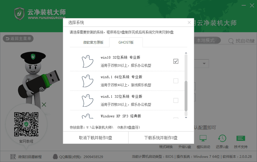 4.选择自己需要的系统(如果自己有准备系统,可以点击取消下载并制作U盘),点击下载系统并制作U盘。